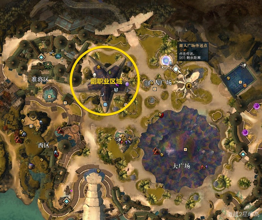 狮子拱门 商人广场传送点 [&BBAEAAA=] - 狮子拱门商人广场旁边就是副职业区,和其中大师级工匠对话学习副职业。使用旁边的加工台,制作物品获得经验并升级。详细的升级方法可在副职业攻略中查询。